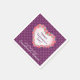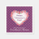 These Valentine's Day paper napkins feature a heart with hand drawn pink and purple flowers as the border. The background is dark purple with a small heart pattern overlay. The floral heart in the centre features text that reads: Happy Valentine's Day! Customisable text below the heart allows you to customise with your name and the title of your event.