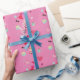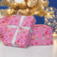 Valentine's Day wrapping paper with hearts, balloons, chocolates, teddy bear & more.