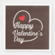 This sweet Valentine's Day paper napkin design features white script text of Happy Valentine's Day decorated with a heart shaped swash and red heart accent. Chocolate brown background is optional and can be changed to any color. Search ID734 to see other products with this design.