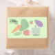 Featuring vector drawn cheerful vegetables, including a carrot, peas, radish, pepper, eggplant, and tomato.