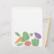 Featuring vector drawn cheerful vegetables, including a carrot, peas, radish, pepper, eggplant, and tomato.