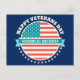 Happy Veteran Day honouring all who served with USA flag element on a dark blue background. Deep respect and gratefulness for their service to the country.