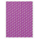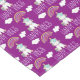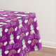 A patterned tablecloth with an adorable drawing of an awesome unicorn sitting on its butt peaceful and happy. Cute fluffy clouds and a colourful rainbow above. Text says: Happy Vibes. Awesome positivity. Set on a pinkish purple background.