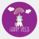 Happy Vibes Cute Smiling Unicorn Classic Round Sticker