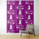 A patterned wall tapestry with an adorable drawing of an awesome unicorn sitting on its butt peaceful and happy. Cute fluffy clouds and a colourful rainbow above. Text says: Happy Vibes. Awesome positivity. Set on a pinkish purple background.