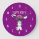 Happy Vibes Typography Cute Smiling Unicorn Large Clock