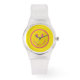 I only have one complaint. I ordered the watch with clear case and strap, and what was sent was white case and strap. I'm going to keep it because 1) it looks very nice in white, and 2) it would take too long to get a replacement made and sent in time for my occasion. Aside from the mix up with the color, the watch does look very good in white. The purple dial is actually sparkly which did not show in the online images. That was a nice surprise. If you like Swatch watches this is very similar to those. It's 33.6mm in diameter, 10.5mm thick, and 40.6mm lug to lug. Stainless steel case back says 3ATM/30m WR, so no swimming or showering or submerging this one. If you like Woodstock, this is a great choice.