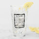 This glass tumbler for beverages has a happy white cat walking on the top of piano keys with a fluffy white tail inside a black frame with bars of music notes. Customise your text on the front and back with the templates.
