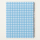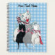 This planner is blue and white plaid with a happy white mother cat sitting with her three cute kittens who are white, black, and grey all wearing bows around their necks. Customise your text on the front with the template.