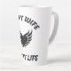 Elevate your coffee experience with our Happy Wife Happy Life Angel Wings Latte Mug. Featuring a sleek design of black angel wings embracing a heart, this mug exudes elegance and love. The words 'Happy Wife Happy Life' add a touch of sentiment, reminding us of the joy found in a harmonious partnership. Made with high-quality ceramic, this latte mug is perfect for savouring your favourite brews in style. Treat yourself or surprise your loved one with this special mug that celebrates the beauty of love and happiness."