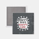Bold text reading "Happy Wife Happy Life" is centred against a grey background. The black and red text sits on a white rectangle with large textured white dots around it, providing a playful contrast against the solid colour backdrop.