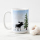 This winter holiday season coffee mug features a snowflake, moose, and pine tree design. The rustic good looks of this design will complement a cabin-style kitchen during the winter holiday season.
