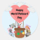 Happy World Postcard Day Sticker decorated with postcards, an illustrated Balloon, and a cat with a heart. Easily update the text.
