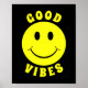 Good Vibes - Cool yellow happy smiling face. Drive the message down with a bold yellow on black design. Good vibes is a slang phrase for the positive feelings given off by a person, place, or situation. It evoked positive, safe, happy sensations. Sending good thoughts / positive energy, and it can also mean 'Right On!' and 'Go for it!'. An expression for many occasions.