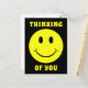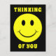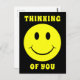 Thinking of you - Cute yellow happy faces. Let someone know that you're thinking of them with this bold yellow on black design. When you're told that you’re on someone’s mind it can be a great feeling. Also telling someone that they’re on your mind can feel great, too. Great for sending to a spouse - wife, husband, or a friend, parents, grandparents, relatives, an expression for any occasion.