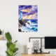 A tribute to endurance, this painting reimagines the coastal beacon amid tempest and light. The artist’s flowing watercolor lines give movement to the waves and sky, balancing chaos with hope.