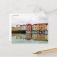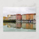 Postcard of colourful buildings and their reflections with boats along a canal in Livorno, Italy, . Digital photography by Sue Melvin