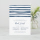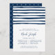 Elegant coastal first holy communion invitations feature a top border of hand drawn stripes in nautical cobalt blue. Personalise with your first communion details beneath in a chic mix of block, serif and handwritten typefaces. Includes space for both the religious ceremony and party or celebration to follow. Invitations reverse to a pattern of tiny white anchors on navy blue.