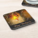 Beautiful coasters for Thanksgiving. Text, Happy Thanksgiving. Image is in fall colours and is a custom coaster so you can change the image and use your favourite photo.