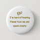 I work in Customer Service and deal with a lot of people. It makes my life so much easier if people know that I am hearing impaired. Many people ask where I got the button because they know someone that needs one also! In a previous order I ordered a larger button. The wording was bigger and more noticeable but had the same wording