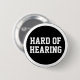 Another sporty hard-of-hearing badge by JessicaAmber - ask about custom orders! This customisable button features the slogan 'Hard of Hearing' in a bold varsity-style serif font. You can customise the text as needed. Background is black. A great gift for a family member who wears hearing aids. ••• For more minimalist special needs badges, visit my store Zazzle.com/Elder_Vitality ••• For custom orders, message me on Zazzle