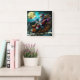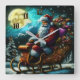 Hard Pastel Drawing Christmas Santa in Sleigh 2 Square Wall Clock