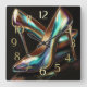 Hard Pastel Drawing Iridescent High Heel Pumps Square Wall Clock