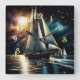 Hard Pastel Drawing Night Sailing Square Wall Clock