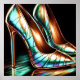Hard Pastel Drawing Woman's Iridescent High Heels The aspect ratio is 1:1.