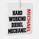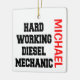 This is a unique ornament featuring the quote "Hard Working Diesel Mechanic", perfect for any hard working diesel mechanic.