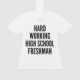 This text design featuring the phrase "Hard Working High School Freshman" is perfect for any high school freshman that works hard.