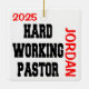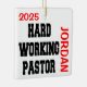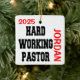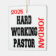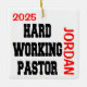 This ornament featuring the quote "Hardworking Pastor" is perfect for any hard working pastor.