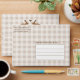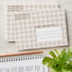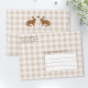 Whimsical wedding or engagement party envelop design featuring Destei's watercolor hares facing each other with a brown heart between them on beige gingham background. There are also personalizable text areas for the couple's name and wedding date on the inside while on the front there is space for mailing header and return address info. Perfect for rustic, farm or countryside celebrations.