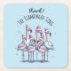 Hark The Flamingos Sing Square Paper Coaster