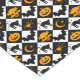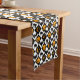 Halloween harlequin pattern with black, white, and orange colours on a customisable table runner. Cute and spooky design for any Halloween party. There are bats, skulls, black cats, jack o lanterns, spiders, and crescent moons to add a spooky cute look to this traditional Halloween diamond design. Adjust the pattern size to you liking and add your favourite background colour instead of the white if you prefer.