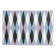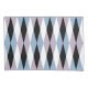 A mid-century inspired design featuring a harlequin diamond pattern in blue, dusty lilac, black and white.