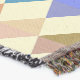Mid-Century Modern Harlequin pattern of made of stacked triangles forming diamond shapes - shades of soft denim blue, buff and tan on a cream / off-white background