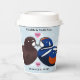Celebrate any wedding anniversary with these stylish paper cups, which feature a beautiful stylised pair of Harlequin Ducks! Elegant lettering with hexagonal confetti on a light blue background add a memorable touch for this special occasion and milestone. Customise with lovebirds' names and years of marriage.