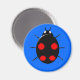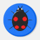 A magnet featuring a black harlequin ladybird with four irregular shaped red spots on its back, six legs and two white spots that look like eyes on the front of its head. Originally an Asian species it is now living and breeding in Europe and America. It has been put on a blue background but also looks great against other colour backgrounds. You can change the background colour and other aspects of the design by clicking on the customise it button.
