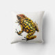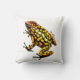 Original fine art design of wild Harlequin poison dart or arrow frog by artist Carolyn McFann of Two Purring Cats Studio on a quality, machine-washable American Mojo throw pillow for frog lovers.