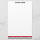 A new twist on the traditional harlequin pattern, with the slanted black and white diamonds on this Stationery. A bright red border separates the design from the rest of the paper.