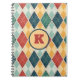 Harlequin Vintage Gold Red Green Monogram Argyle Notebook