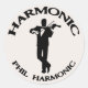 Silhouette of a suave, dashing, debonair violinist, with, "Harmonic, Phil Harmonic" text. Black & white graphic, t-shirts, sweats, cards, gift swag.