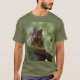 I give wanted to give this a 4 instead of a 5 because these Basic DARK T0shirts run unexpectedly SLIM or Narrow. Which is great if you do not have a potbelly, but I have a paunch. It isn't the shirt's fault that I've got a beer belly. The design and shirt itself is a quality cotton shirt. The color is more of a deep purple, but still a very pretty color. The Basic DARK T-shirts run a bit SLIMMER than the Basic Ts. The neck is a fraction narrower (or seems to be narrower) also. I'm a paunchy middle-aged woman and my neck is 12 inches (31cm) thick and the neckline fell about the same as in the photo of the man, and I had the desire to tug it a bit. So if you're a thick necked man or like loose shirts, be aware these are slimmer shirts. Once I get rid of my lockdown paunch it'll look great. The shirt washed well in cold water with no apparent bleeding. We don't have a dryer, so it hung dry. Did not shrink. Love the colors and the design. The design looks smaller on my shirt than it does on the model on-line. But still, it looks good on the shirt. The printing looks as it does on the model, just the size seems fractionally smaller. Washed garment in cold water, hung dry and design appeared unaffected.