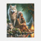 Harmony between Native Indian and wolves in nature Fleece Blanket