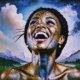 "Harmony in Gold and Sky". This image blends a modern Afro muse with starry, golden elements, celebrating the balance of human strength and universal harmony. Metallic accents and cosmic connections make this a visually stunning piece to inspire positivity and a sense of the infinite.