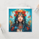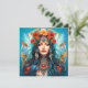 At the centre of this mesmerising canvas is a resplendent woman adorned in a regal Native American headdress, a testament to the timeless beauty of tradition. The headdress, adorned with vibrant red flowers and azure blue feathers, cascades gracefully, evoking the spirit of nature in every petal and plume. The jewellery that graces her neck and forehead, a tapestry of carnelian and various Southwest stones, reflects the earth's vibrant hues, creating a harmonious symphony of colours that captivate the viewer.