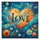 Dive into the mesmerising swirls of "Harmony in Hues: A Symphonic Love Ode," where art and music collide to celebrate love. This striking image features a vibrant palette of blues, oranges, and yellows that evoke Van Gogh's iconic Starry Night. At the heart of the composition, the word "LOVE" emerges boldly, intertwined with a flowing musical staff and notes that seem to dance across the canvas. Flowers in full bloom anchor the lower portion, symbolising growth and beauty in harmony, making this piece an ideal gift or a captivating addition to any room that sings with colour and life.