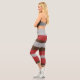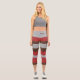 Three-color design with harmonious stripes. Horizontal lines in three colors for your sporty Capri leggings. Add your name on the high waist athleisure. This variant is the festive color scheme in gray, red and brown.