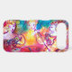 Colourful,artistic whimsical,abstract figurative contemporary watercolor painting with three player figures,floral swirls,roses,flowers,gold sparkles,silver foil in vibrant yellow,red green,blue,pink fuchsia colours . make custom gifts at Zazzle .